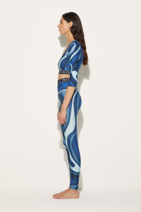 Equal parts sporty and stylish, this crop top is instantly recognisable thanks to the swirling Marmo print and a logo-jacquard underband. It's cut from eco-Lycra and finished with three-quarter length sleeves. - Kindly note that this product, as well as many other Pucci items, is made using an allover print and it falls differently on each garment, so the product you will receive may differ from the one in the picture. - Sky blue, cornflower blue, cobalt blue, navy blue - Scoop neck - Three-quarter length sleeves - Elasticated logo-jacquard underband - 80% nylon, 20% elastane - Hand wash - Made in Italy - Style ID: 4CTP014C765063 - Model is 177cm and wears size XS - Made from a lightweight, stretch fabric