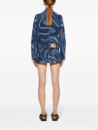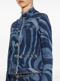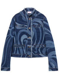 Marmo-print denim jacket The swirling lines of Pucci's ocean-inspired Marmo print decorate this denim jacket. Made in Italy, it's designed for a regular fit and includes long sleeves, raw edges and silver-tone hardware. Highlights - Dark blue/light blue - Stretch-cotton/denim - Abstract pattern print - Raw edge - Stand-up collar - Front button fastening - Four front welt pockets - Long sleeves - Logo plaque - Straight hem - Silver-tone hardware Made in Italy Composition Cotton 99%, Elastane 1%
