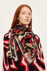 An iconic accessory that combines softness and sophistication, designed to add a touch of class to any look. This pashmina is made from high-quality silk and wool and is fully decorated with the unmistakeable Marmo print in black and gold. The fringed edges add an extra touch of glamour. - Black and Gold - Silk and wool - Dimensions: 120x120 cm - Fringed edges - Delicate dry clean. - Made in Italy - ID: 5UGB555UC231