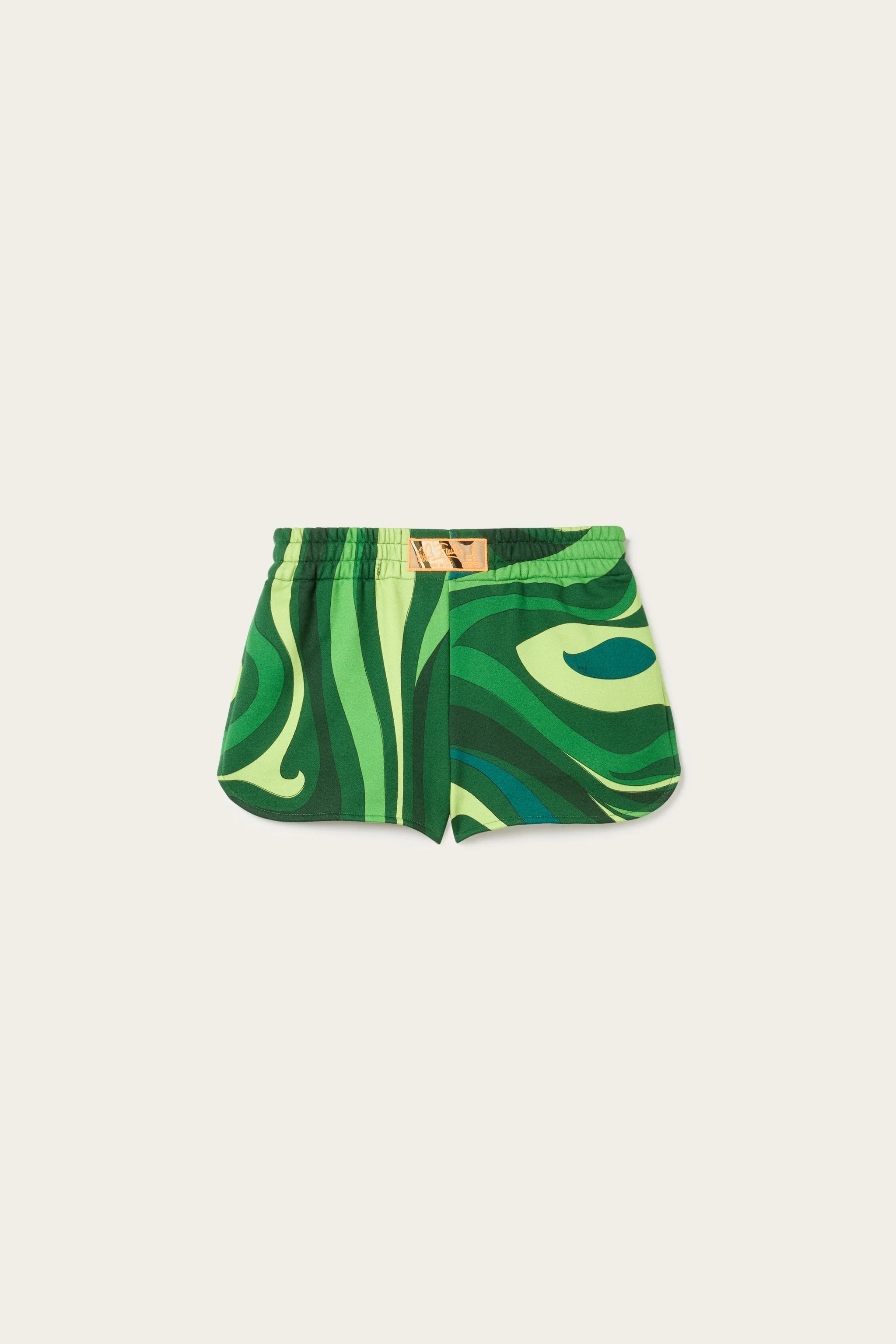 Green-colored Marmo print jogger shorts feature a “poofy” fit that adds volume and practicality to one of the brand's most iconic graphics. Elasticized waist and hems provide the ideal comfort and fit for a cool, versatile look.Pair with the matching T-shirt or sweatshirt for a complete look that knows how to mix cheerful Pucci elegance with a sporty spirit. - Green - Elasticized waist and hems - "Poofy ”fit - Cotton fleece - ID: 5HTU305H980066
