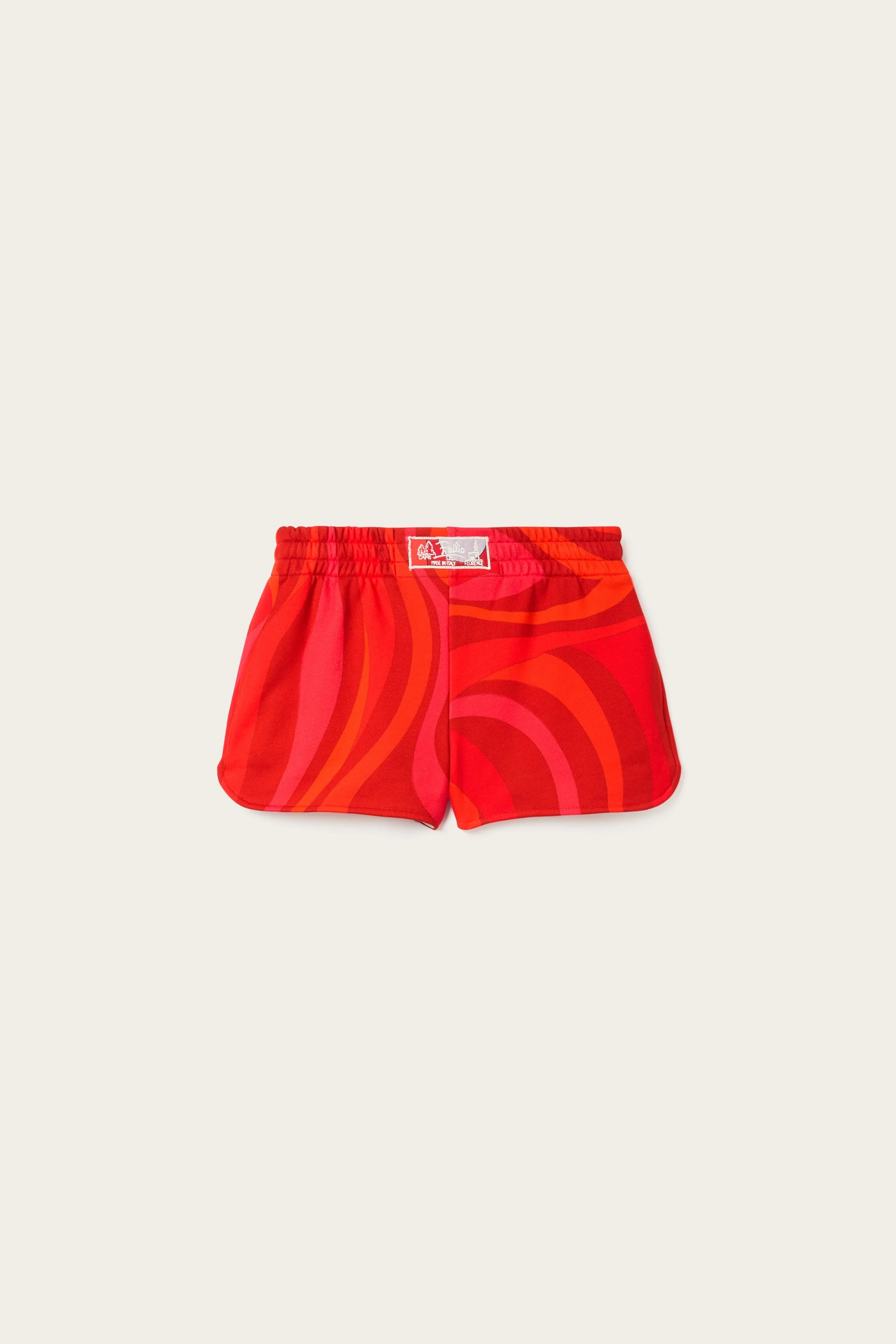 Red-colored Marmo print jogger shorts feature a “poofy” fit that adds volume and practicality to one of the brand's most iconic graphics. Elasticized waist and hems provide the ideal comfort and fit for a cool, versatile look.Pair with the matching T-shirt or sweatshirt for a complete look that knows how to mix cheerful Pucci elegance with a sporty spirit. - Red - Elasticized waist and hems - "Poofy ”fit - Cotton fleece - ID: 5HTU305H980067