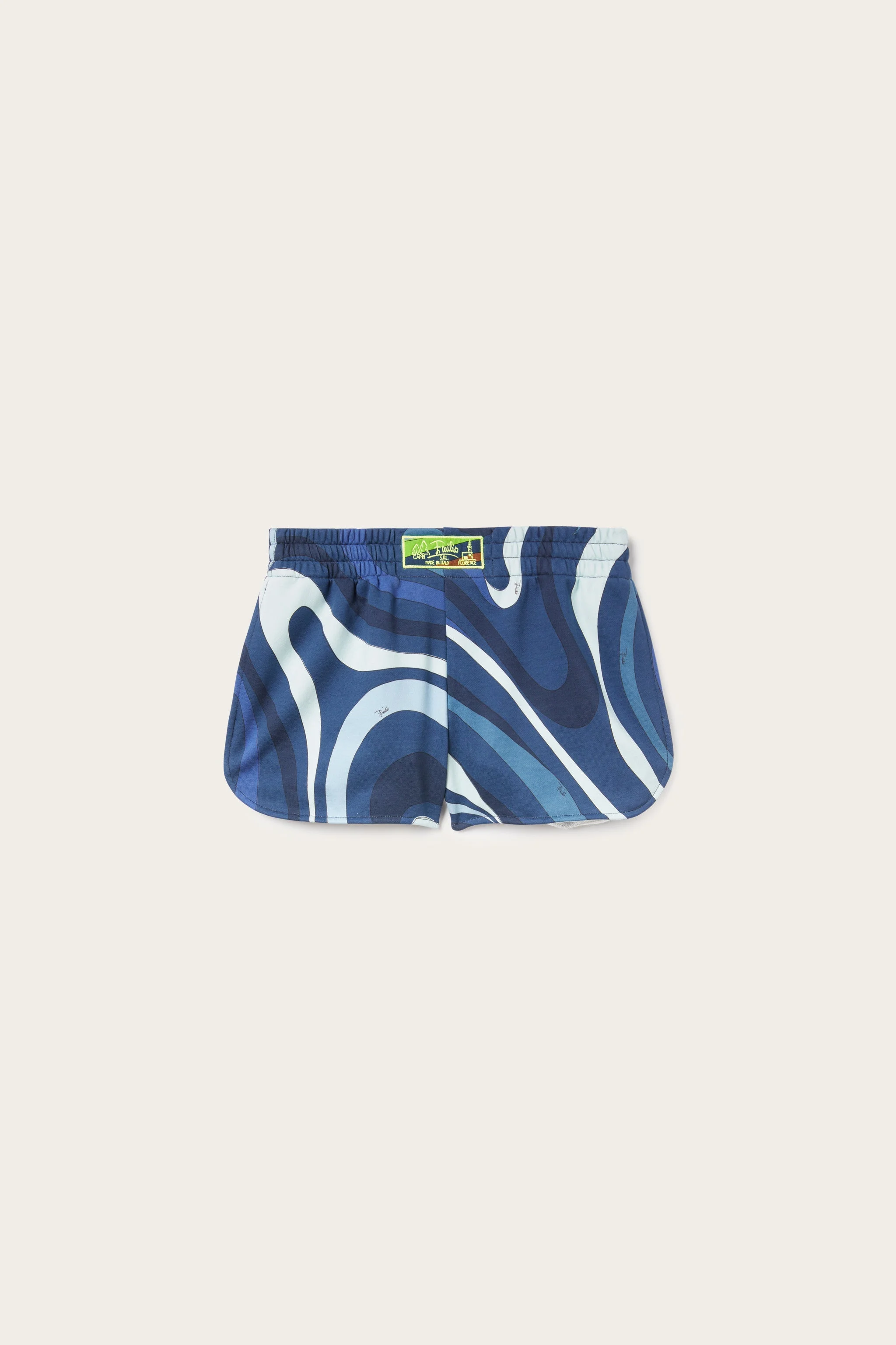 Indigo-colored Marmo print jogger shorts feature a “poofy” fit that adds volume and practicality to one of the brand's most iconic graphics. Elasticized waist and hems provide the ideal comfort and fit for a cool, versatile look.Pair with the matching T-shirt or sweatshirt for a complete look that knows how to mix cheerful Pucci elegance with a sporty spirit. - Blue - Elasticized waist and hems - "Poofy ”fit - Cotton fleece - ID: 5HTU305H980065
