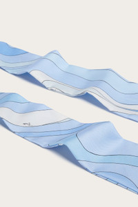 A bold, graphic accessory that reinterprets the bandana in a contemporary key. Made from printed silk twill, this hat is enlivened by the Marmo print in pale blue, where color contrasts create movement and depth. The twill structure gives body and definition, while maintaining a soft and fluid feel. A distinctive piece, designed to complete your look with character and lightness. - To offer you a unique Pucci garment, we use an all-over print that makes the product unrepeatable. Therefore, the pattern print may vary from the one displayed in the photo. - Pale Blue - 100% silk - Soft finish - Made in Italy - Dry clean only. - ID: 6HGF316H761005