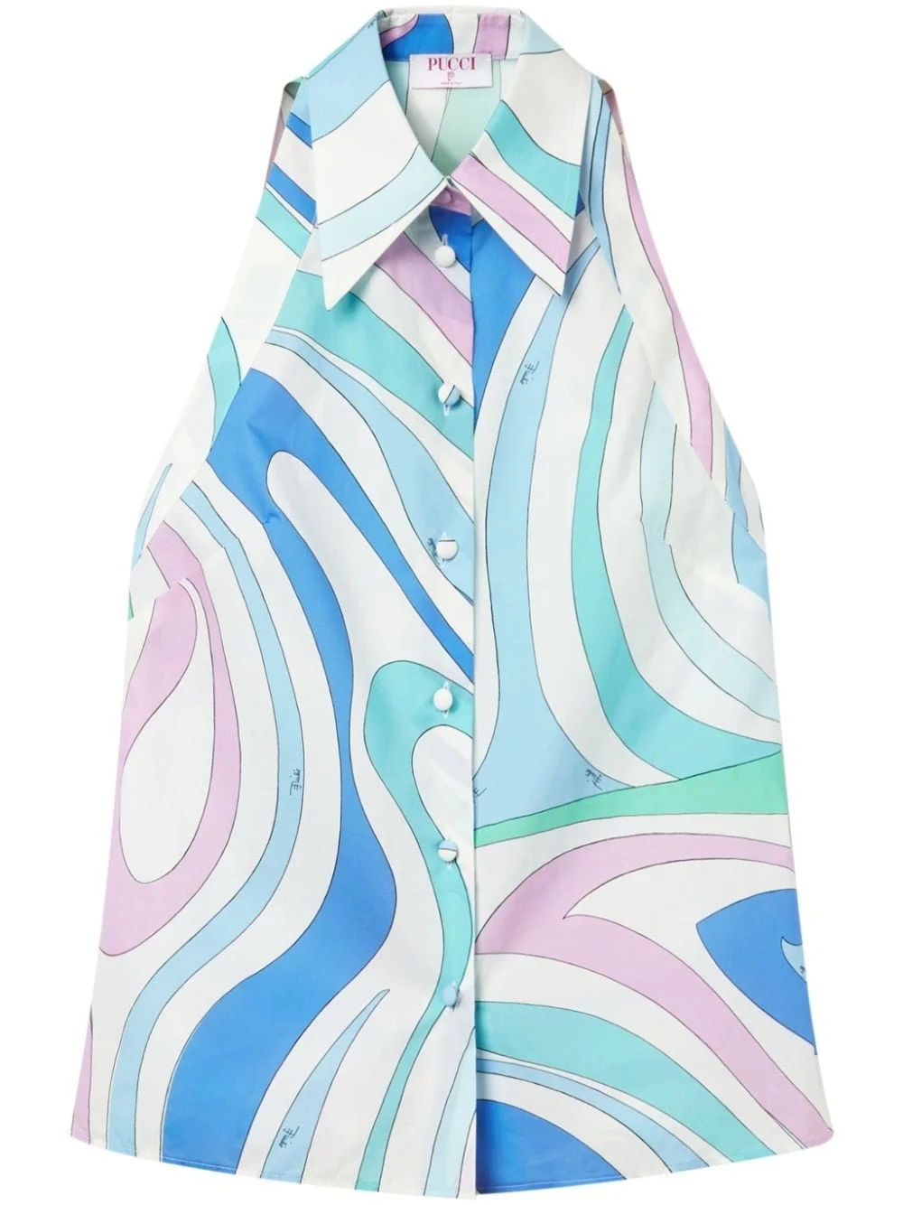 Marmo-print sleeveless shirt Highlights - White/multicolour - Cotton - All-over marmo print - Fabric-covered buttons - Oversized pointed collar - Front button fastening - Sleeveless - Curved hem Made in Italy Composition Cotton 100%