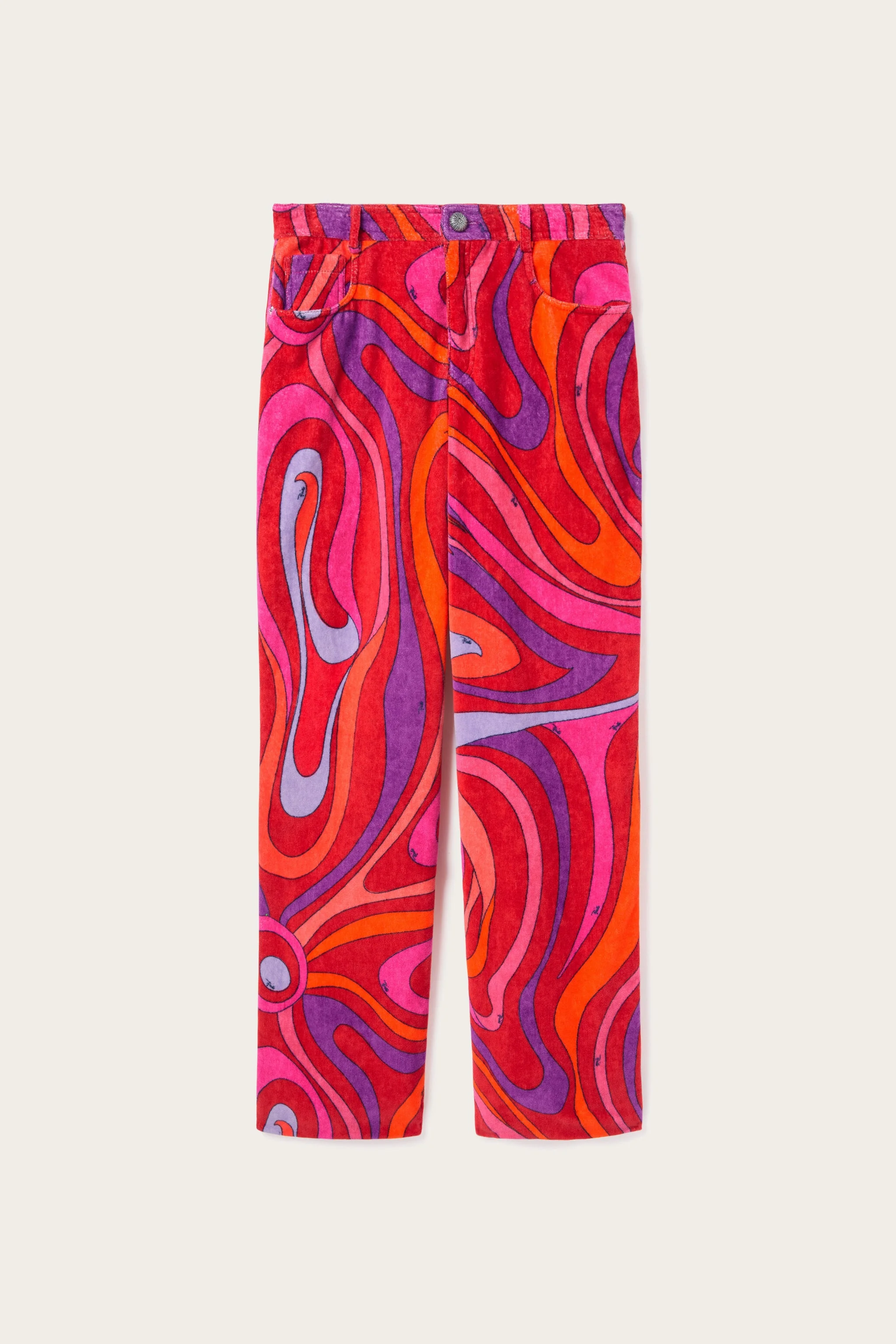 A perfect balance of style and everyday comfort. These wide-leg pants, with a comfortable, relaxed fit, are designed for those looking for a versatile garment with character. Made of soft cotton, they offer a lightweight and durable feel, making them ideal for any destination: work, leisure and travel.The Marmo print in coral and fuchsia tones adds an artistic vibrancy, making these pants a unique element of your wardrobe. - To offer you a unique Pucci garment, we use an all-over print that makes the product unrepeatable. Therefore, the pattern print may vary from the one displayed in the photo. - Coral and Fuchsia - Main fabric: 100% Cotton - Pocket lining: 100% Silk - Wide leg - Comfortable fit - Marmo print - Gently dry clean. - Made in Italy - ID: 5HRT255H889047 - The model is 177 cm tall and wears a 38 italian size.