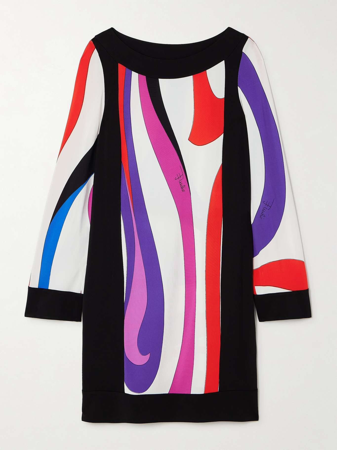 EDITORS'NOTES From the shift silhouette to the swirling 'Marmo' print, PUCCI's mini dress feels so retro – it's inspired by an archival style from 1968. It's made from satin with a fluid drape and lustrous sheen and has a sweeping bateau neckline. Lean into the era by styling yours with platforms. SIZE & FIT Model measurements: - Fits true to size, take your normal size - Designed for a loose fit - Mid-weight, stretchy fabric - Model is 175cm/ 5'9" and is wearing an IT 40 - Bust: 79cm/ 31” - Waist: 64cm/ 25” - Hip: 92cm/ 36" DETAILS & CARE - Multicolored satin - Slips on - 95% viscose, 5% elastane - Dry clean