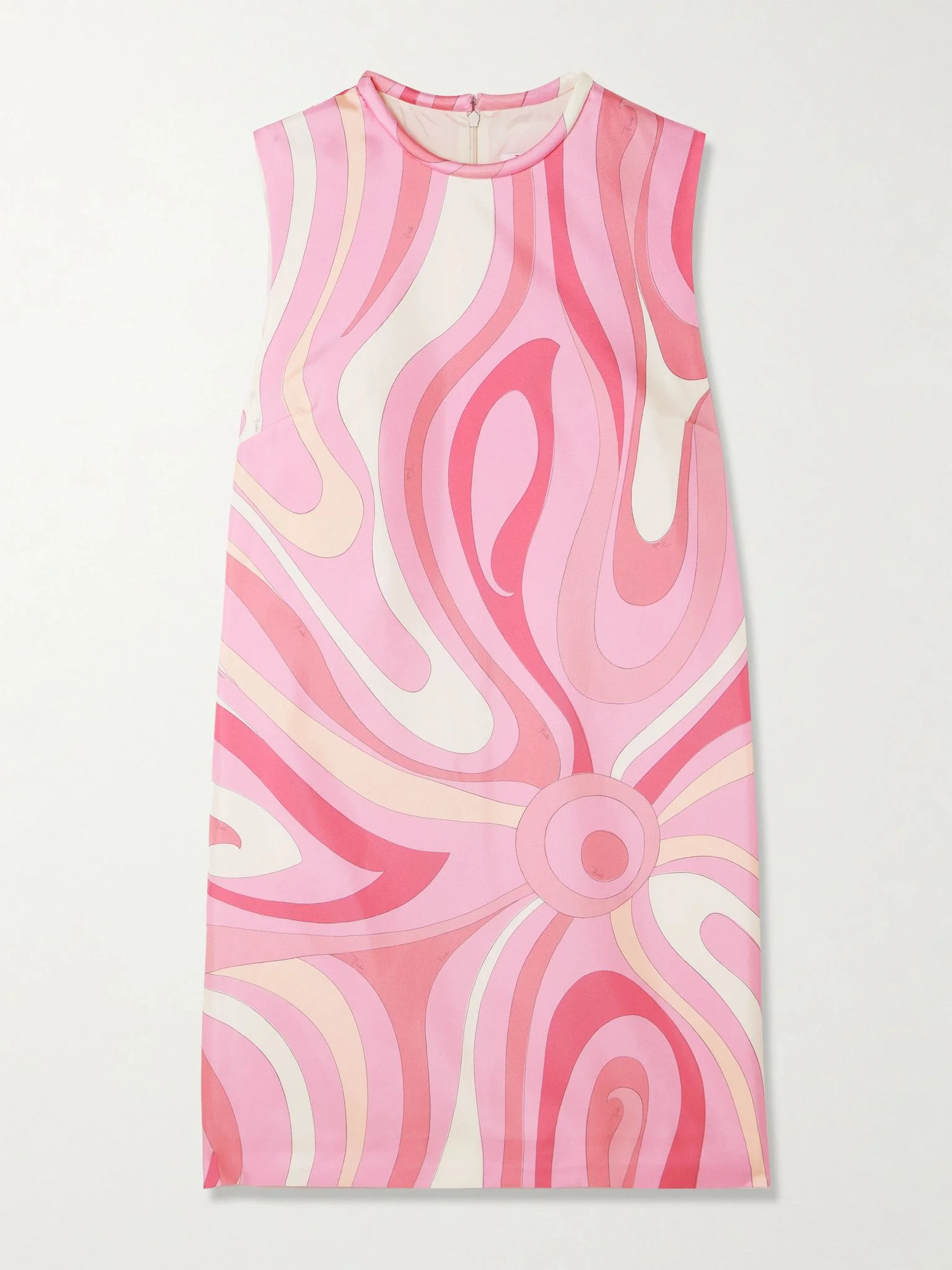 The swirling 'Marmo' print was originally designed by PUCCI in 1968, so this dress feels retro, in the very best way. It's cut from silk-twill in a shift silhouette and has a rolled crew neckline. Take cues from the era and wear yours with platform sandals. Size & Fit - Fits true to size, take your normal size - Designed for a slightly loose fit - Mid-weight, stretchy fabric - Model is 177cm/ 5'10" and is wearing an IT 40 Model measurements: - Bust: 85cm/ 33” - Waist: 66cm/ 26” - Hip: 92cm/ 36” Details & Care - Tonal-pink and white silk-twill - Concealed hook and zip fastening at back - 100% silk - Unlined - Dry clean