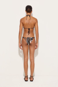 A beachwear classic revisited with a graphic, contemporary twist: this reverse triangle bikini features a defined neckline and adjustable ties for a customizable fit. Made from stretch Lycra with UV protection, it is decorated with the black and gold Marmo print, a vibrant tribute to Pucci's hypnotic and enveloping aesthetic. - To offer you a unique Pucci garment, we use an all-over print that makes the product unrepeatable. Therefore, the pattern print may vary from the one displayed in the photo. - Black and Gold - Stretch Lycra - Main Fabric: 80% Polyamide - 20% Elastane - Triangle top with neckline - Briefs with adjustable ties - Hand wash - Made in Italy - ID: 5UMX005U775066