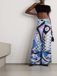 EDITORS'NOTES PUCCI's pants are printed with its iconic ‘Vivara’ print, created by founder Emilio in the ‘60s and inspired by the crescent shape of the Italian island after which its named. They’re cut from fluid silk-twill, sit high on the waist and fall to flowing, wide legs. SIZE & FIT Model measurements: - Fits true to size, however those who are between sizes should take the smaller size - High-rise, designed for a wide-leg fit - Mid-weight, non-stretchy fabric - Model is 177cm/ 5'10" and is wearing an IT 38 - Bust: 79cm/ 31" - Waist: 61cm/ 24" - Hip: 89cm/ 35" DETAILS & CARE - Multicolored silk-twill - Concealed hook and zip fastening at side - 100% silk - Dry clean