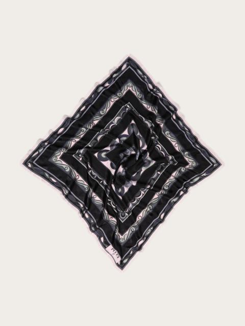 An iconic accessory that combines softness and sophistication, designed to add a touch of class to any look. This silk scarf features an elegant Jacquard pattern across the entire surface, which blends perfectly with the mix of multicolor prints. Lightweight yet enveloping, it is perfect for wearing on cool spring evenings or as a distinctive element for a winter outfit. - Multicolor - Silk - Jacquard pattern across the entire surface - Dimensions 90x90 cm - Delicate dry clean. - Made in Italy - ID: 5UGB485UC242