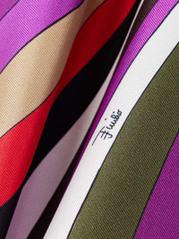 EDITORS'NOTES PUCCI's mini skirt is decorated with archival 'Iride' stripes which have seen countless iterations throughout the decades. It's made from lustrous silk-twill in an A-line silhouette and has a wrap front that secures with a snap fastening at the side. Style yours with a simple bodysuit or equally vibrant shirt. SIZE & FIT Model measurements: - Fits large to size, take one size smaller than normal - Mini-length, designed to be worn at the waist - Lightweight, non-stretchy fabric - Model is 177cm/ 5'10", normally wears an IT 40 and is wearing an IT 38 - Bust: 79cm/ 31" - Waist: 61cm/ 24" - Hip: 89cm/ 35" DETAILS & CARE - Multicolored silk-twill - Concealed snap fastening at side - 100% silk - Dry clean Large to size. See Size & Fit notes.