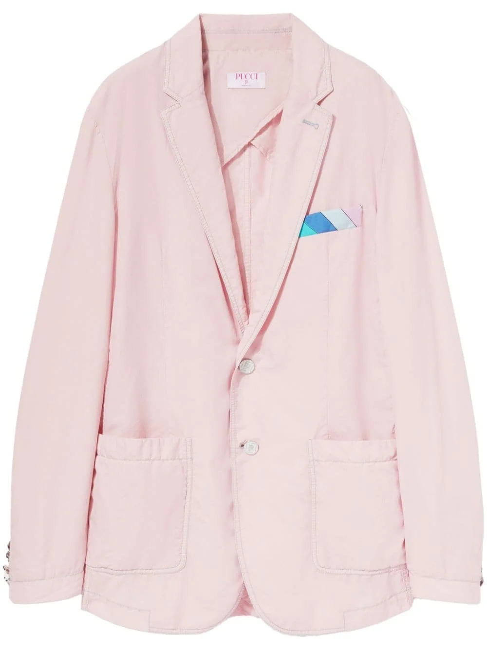 notched-lapel cotton-silk blazer Highlights - Light pink - Cotton-silk blend - Notched lapels - Chest welt pocket - Two front patch pockets - Long sleeves - Buttoned-cuff sleeves - Curved hem Made in Italy Composition Cotton 65%, Silk 35%