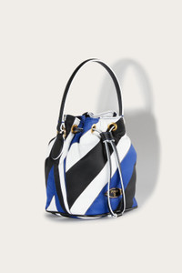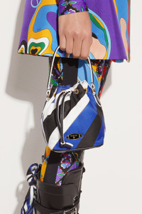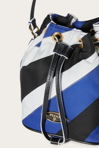 With a medley of colours and curves, Pucci's Iride print invigorates this bucket bag to an exhilarating effect. It's crafted from nylon with smooth leather trims and is finished with a logo plaque at the front. - Kindly note that this product, as well as many other Pucci items, is made using an allover print and it falls differently on each garment, so the product you will receive may differ from the one in the picture. - Navy blue, black, white - Top handle - Detachable shoulder strap - Enamelled logo plaque at front - Gold-tone metal hardware - Drawstring top fastening - 100% nylon; trim: 100% leather - Style ID: 4UBC304U151020 - Height: 16cm; width: 13cm; depth: 10cm