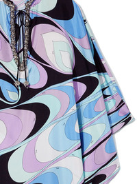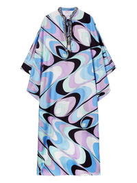 onde-print silk-twill dress Highlights - Light blue/multi - Silk twill - Embellished neckline - Tie fastening - Graphic print Made in Italy Composition Silk 100% Washing instructions Dry Clean Only