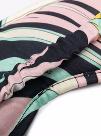 Onde printed travel mask Printed with the signature Onde print, this colourful travel eye mask from Emilio Pucci comes with a matching pocket bag. Made in Italy Composition Outer: Polyurethane 100% SIZE & FIT Measurement LENGTH 7.48 in(19 cm) WIDTH 3.34 in(8.5 cm)