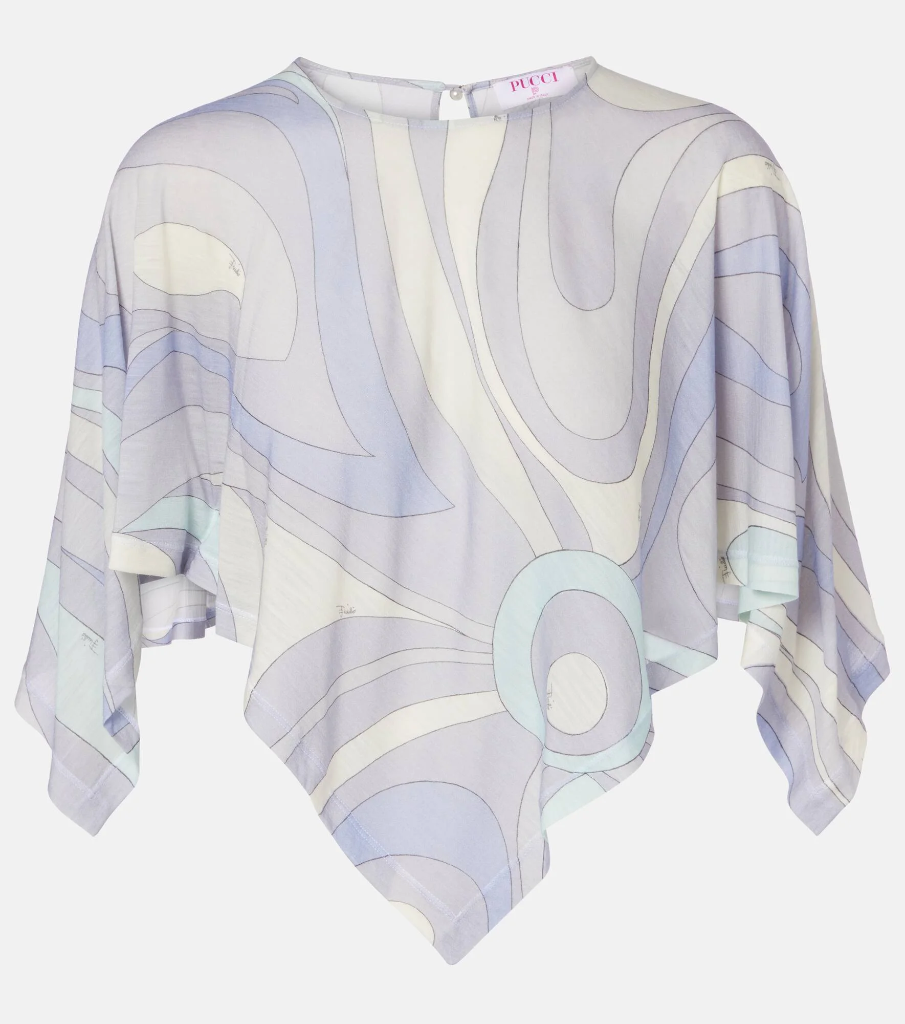 The iconic psychedelic swirling motif is a brand signature, which earned Pucci the title "Prince of Prints". Crafted from a wool blend, his crop top features the pastel Orchidee pattern and is designed with an asymmetric silhouette. Product Details - Material: 80% wool, 20% polyamide - Care instructions: dry clean - Made in Italy - Designer color name: Lavender - Item color: purple, multicolor - Closure: buttoned back - Hem: uneven - Each piece is unique and prints may differ slightly from those shown - Item number: P01110539 Size & Fit - True to size - One size: perfect fit for sizes XS-M - Semi-sheer - Stretchy fabric - Cropped - One size