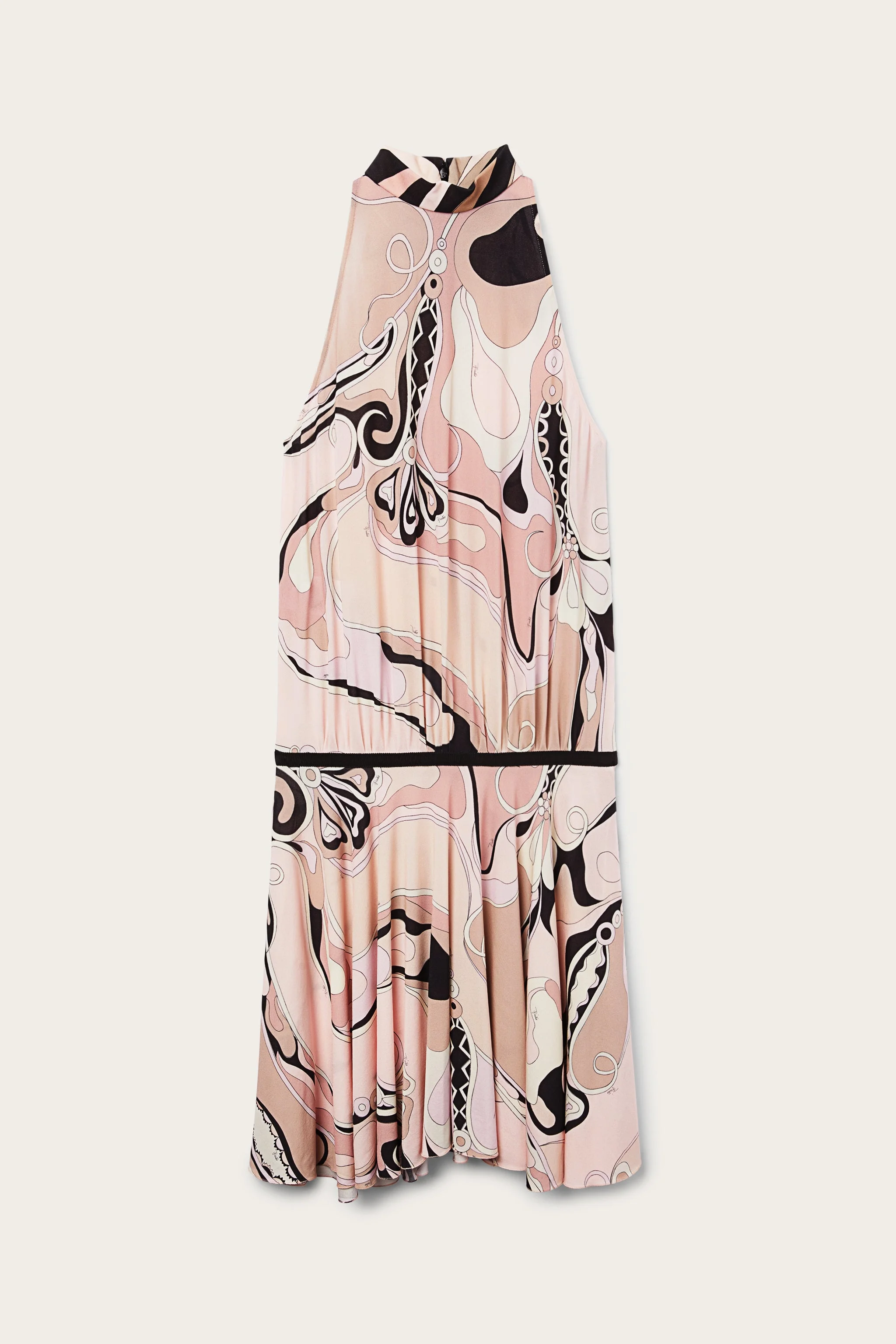 This fluid sleeveless dress features an American neckline that flatters the silhouette, while the defined waistline and short rounded pleated skirt add a fresh, romantic touch. Made of lightweight viscose jersey that is super soft to the touch, it is embellished with the 1966 Orchidees archival print, in which floral motifs move sinuously across the fabric, giving the garment a timeless appeal. Ideal for daytime events or elegant evenings, it is a tribute to Pucci tradition and innovation. - Nude - Flowing sleeveless dress with plunging neckline - Defined waistline and short rounded pleated skirt - Lightweight viscose jersey with soft finish - Orchidee print - Sinuous and flowing movement - ID: 5HJG255H738023