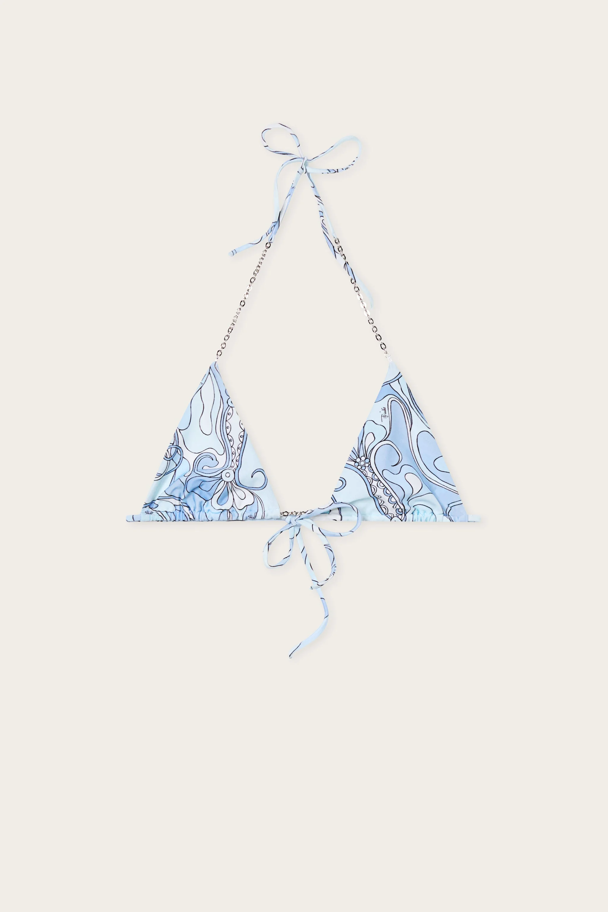 A bikini with a simple design that combines comfort and femininity. The triangle model features removable cups, designed to adapt to the body naturally and provide light support. The Orchidee print, in pale blue, covers the surface with a delicate and refined brightness, while the stretch Lycra, combined with the inner lining, accompanies movement with comfort and stability. A versatile garment, ideal for completing your beach look with elegance and simplicity. - To offer you a unique Pucci garment, we use an all-over print that makes the product unrepeatable. Therefore, the pattern print may vary from the one displayed in the photo. - Pale Blue - Main material: 80% polyamide 20% elastane - Lining: 84% polyamide 16% elastane - Stretch Lycra - Removable cups - Hand wash - Made in Italy - ID: 6HMX696H835P21