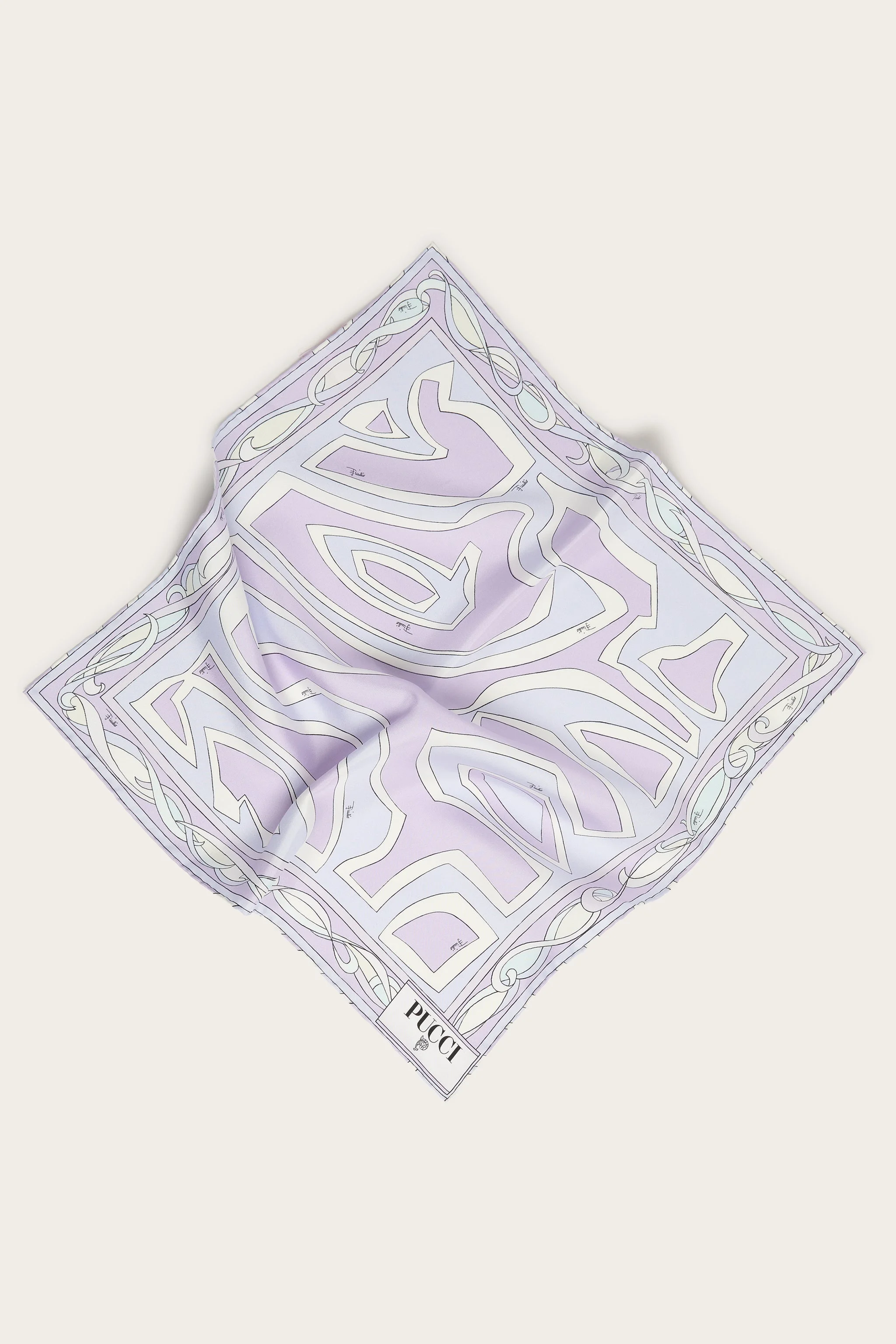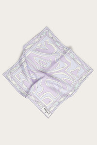 Can such a small and subtle accessory be a big statement? Absolutely. This printed silk twill square is a tribute to iconic Pucci prints, reinterpreted in a delicate lavender palette. With its compact size, it's the perfect accessory to add a distinctive touch to any outfit. Tie it around your neck for a classic look, use it as a hair accessory or as a decoration for your bag: its versatility makes it a must-have for every wardrobe. A piece that celebrates the art of detail and the timeless elegance of the brand. - Lavender - Silk - Dimensions: 52x52 cm - Dry clean only. - Made in Italy - ID: 5UGB515UC282