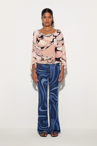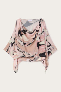 Light as a summer breeze, this top combines fluidity and movement for a look that speaks of moments of refined relaxation. Draped sleeves dance with every step, while the rounded neckline and loose fit lend grace and comfort.Pucci's metal Pesci detail adds a playful and distinctive touch, making this garment perfect for those who love unique details. The Orchidee print, delicately laid on jersey, transforms any outfit into a tribute to the most vibrant beauty. - To offer you a unique Pucci garment, we use an all-over print that makes the product unrepeatable. Therefore, the pattern print may vary from the one displayed in the photo. - Nude - Viscose jersey - Draped sleeves - Fluid fit - Round neckline - Fish-shaped metal detailing - Orchidee print - ID: 5HJM015H738023 - The model is 175 cm tall and wears a 38 italian.
