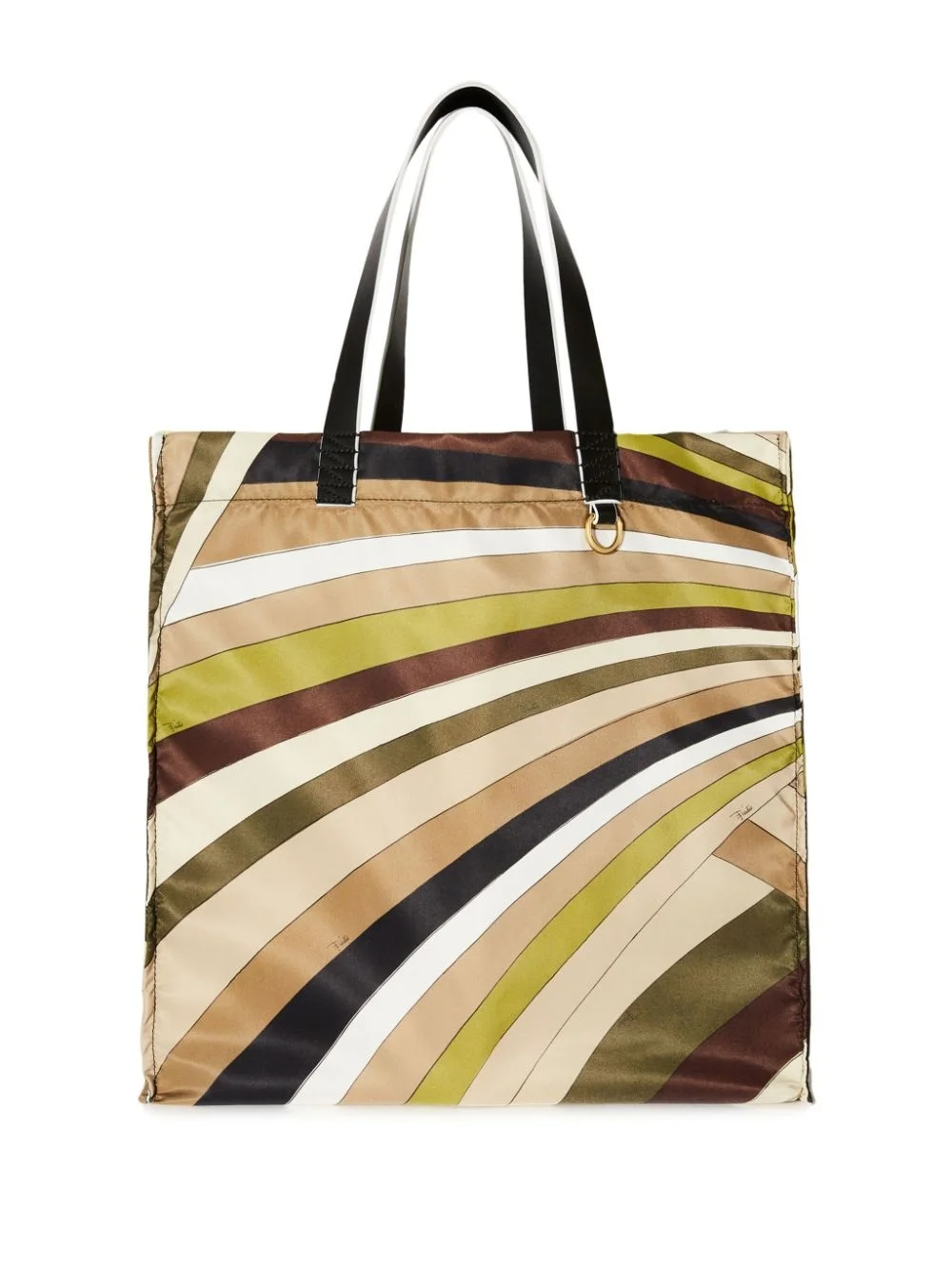 Yummy Iride-print tote bag Highlights - Khaki/moss green/brown/white - Abstract pattern print - D-ring findings - Gold-tone hardware - Two top handles - Open top - Main compartment Made in Italy Composition Nylon 100% SIZE & FIT Measurement DEPTH 4.72 in(12 cm) HEIGHT 15.74 in(40 cm) WIDTH 15.74 in(40 cm)