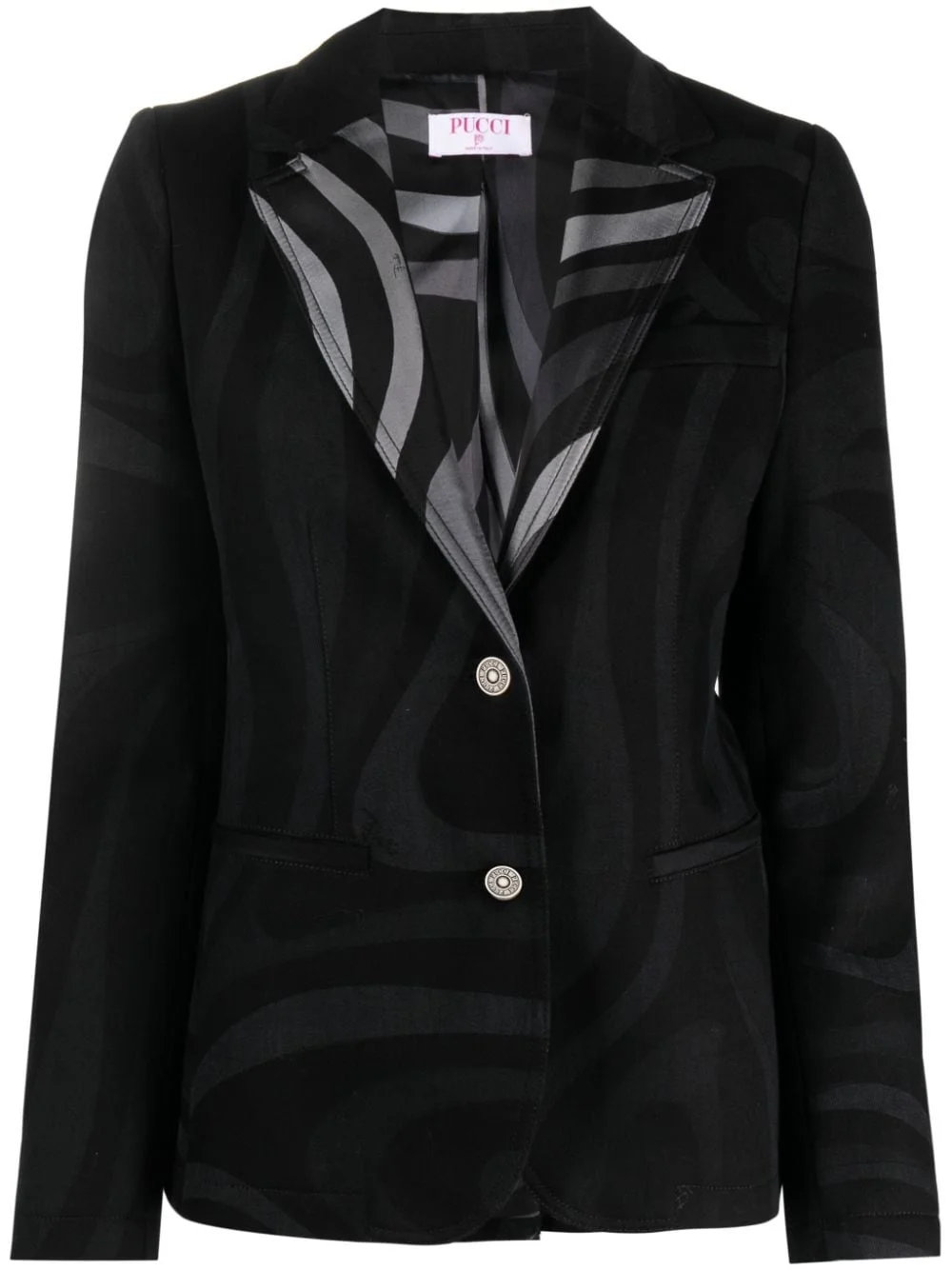 Marmo-print single-breasted blazer Highlights - Black - Stretch-cotton - All-over graphic print - Notched lapels - Logo-engraved buttons - Front button fastening - Two front welt pockets - Long sleeves - Central rear vent - Silk lining Made in Italy Composition Lining: Silk 100% Outer: Cotton 98%, Elastane 2% SIZE & FIT Model measurements Height 5 ft 10 in(1.78 m) Bust/Chest 30.7 in(78 cm) Hips 36.22 in(92 cm) Waist 25.59 in(65 cm)