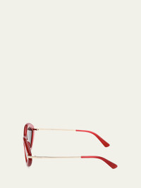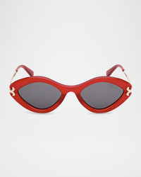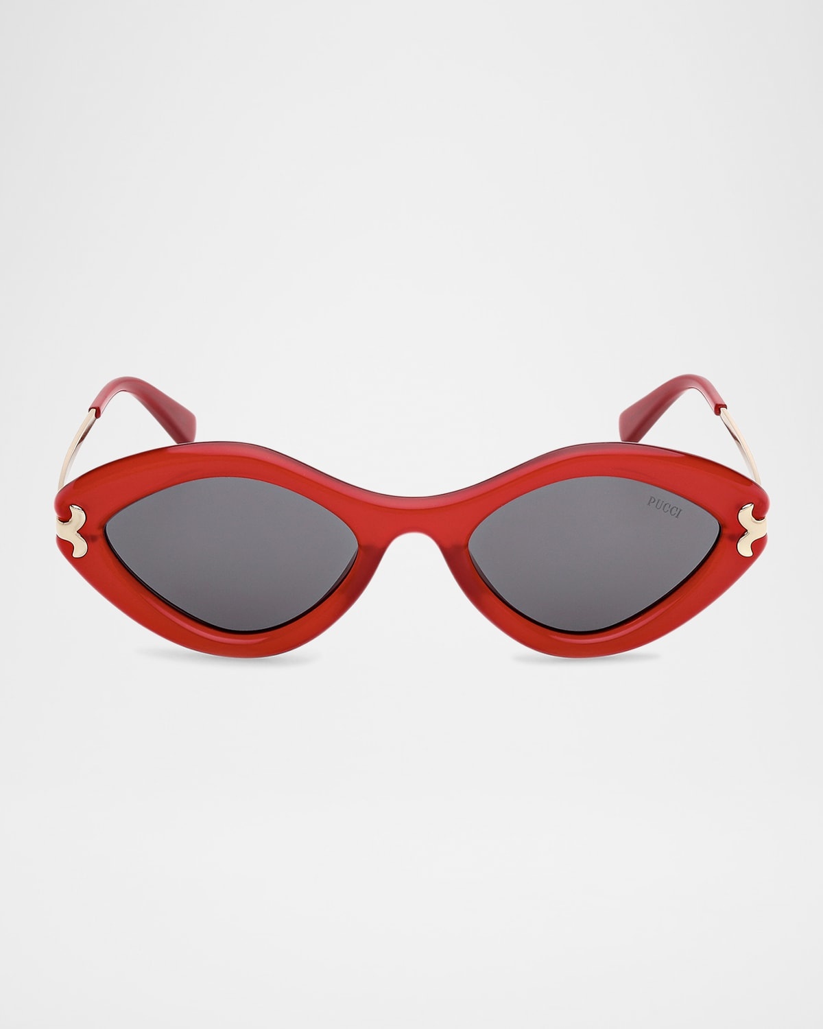 Emilio Pucci "EP0223W" oval sunglasses in acetate and metal Lens/bridge/temple (in mm): 5421140 Solid lenses; logo on the corner Saddle nose bridge Logo on temples Thin, tapered arms Capped earpieces 100% UVA/UVB protection Imported
