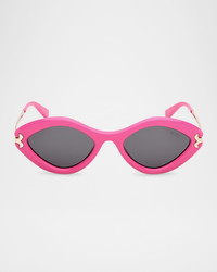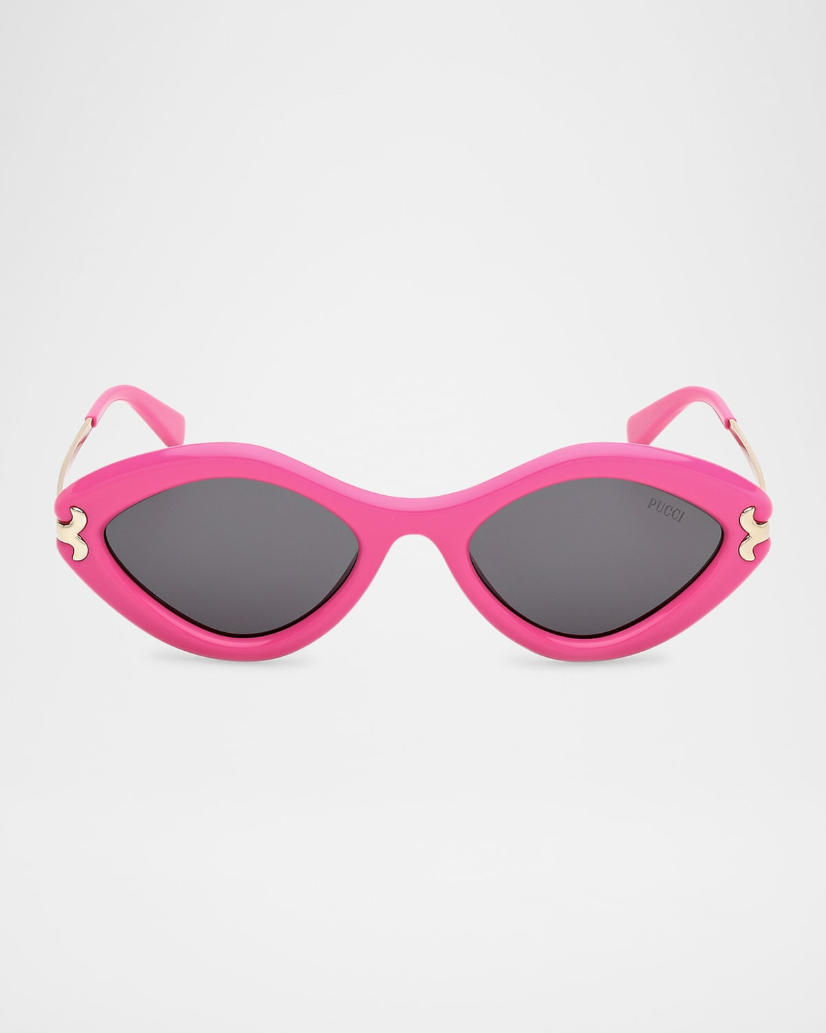 - Emilio Pucci "EP0223W" oval sunglasses in acetate and metal - Lens/bridge/temple (in mm): 54-21-140 - Solid lenses; logo on the corner - Saddle nose bridge - Logo on temples - Thin, tapered arms - Capped earpieces - 100% UVA/UVB protection - Imported - Proposition 65 warning for California residents