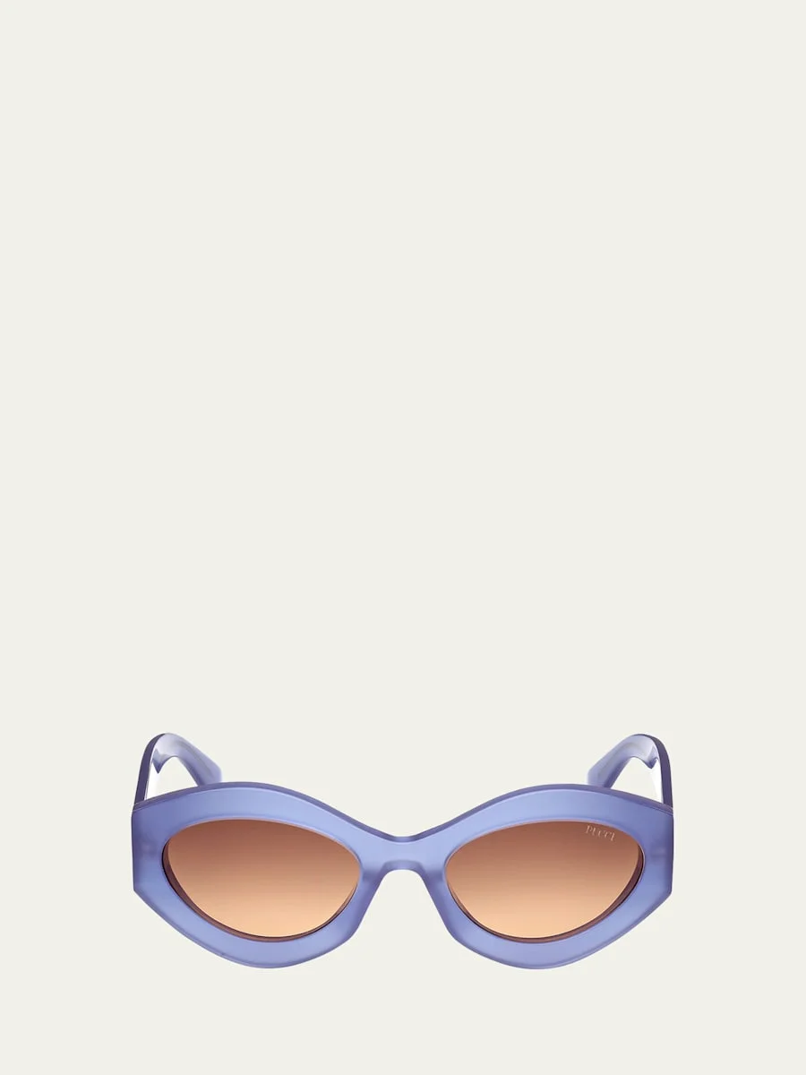Emilio Pucci "EP0227W" cat eye sunglasses in acetate Eye/bridge/temple (in mm): 54-21-140 Gradient lenses Saddle nose bridge Thin, tapered arms Logo at lens Acetate Spot clean 100% UVA/UVB protection Made in Italy Proposition 65 warning for California residents Online Inquiries: BGS21_D545U| Store Inquiries: #4954043