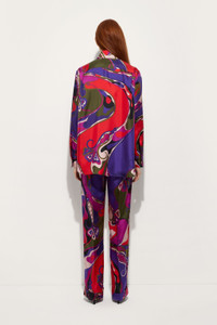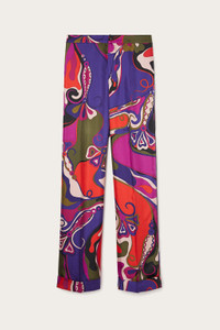 Comfort and sophistication come together in these pure silk trousers, embellished with a magnetic multicolor Orchidee print. The straight cut and relaxed fit make them perfect for any time of day, while the fluid elegance of the fabric glides lightly over the body. A garment that combines the essence of relaxation with the unmistakable Pucci aesthetic, inspired by Oriental art and stylized nature reinterpreted in a modern key. - To offer you a unique Pucci garment, we use an all-over print that makes the product unrepeatable. Therefore, the pattern print may vary from the one displayed in the photo. - Multicolor - 100% silk - Straight, comfortable cut - Regular waist with internal elastic - Dry clean only - Made in Italy - ID: 5URT105U731017