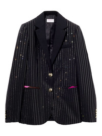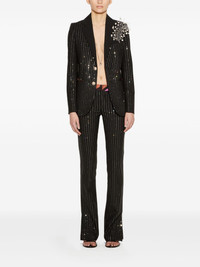 pinstripe rhinestone blazer Highlights - Black - Pinstripe pattern - Rhinestone embellishment - Button fastening - Welt pockets - Notched lapels Made in Italy Composition Virgin Wool 95%, Elastane 5% Washing instructions Dry Clean Only