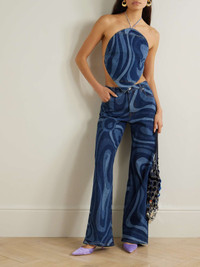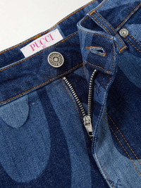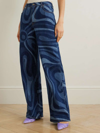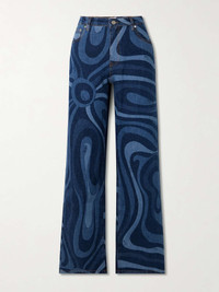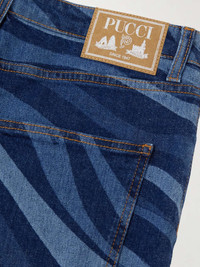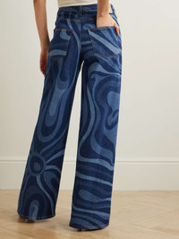 EDITORS'NOTES PUCCI's jeans are printed with the house's wave-like 'Marmo' pattern, which first arrived on the scene in 1968, inspired by marble. Characterized by a high-rise, they have a five-pocket construction and wide legs. They're finished with a branded leather tab at the back. SIZE & FIT Model measurements: - Fits large to size, take one size smaller than normal - High-rise, designed for a relaxed fit - Mid-weight, non-stretchy fabric - Size IT38 jeans have an inside leg of 33"/ 84cm - Model is 177cm/ 5'10" and is wearing an IT 38 - Bust: 81cm/ 32" - Waist: 68cm/ 27" - Hip: 94cm/ 37" DETAILS & CARE - Tonal-blue denim - Button and concealed zip fastening at front - 99% cotton, 1% elastane - Hand wash or dry clean
