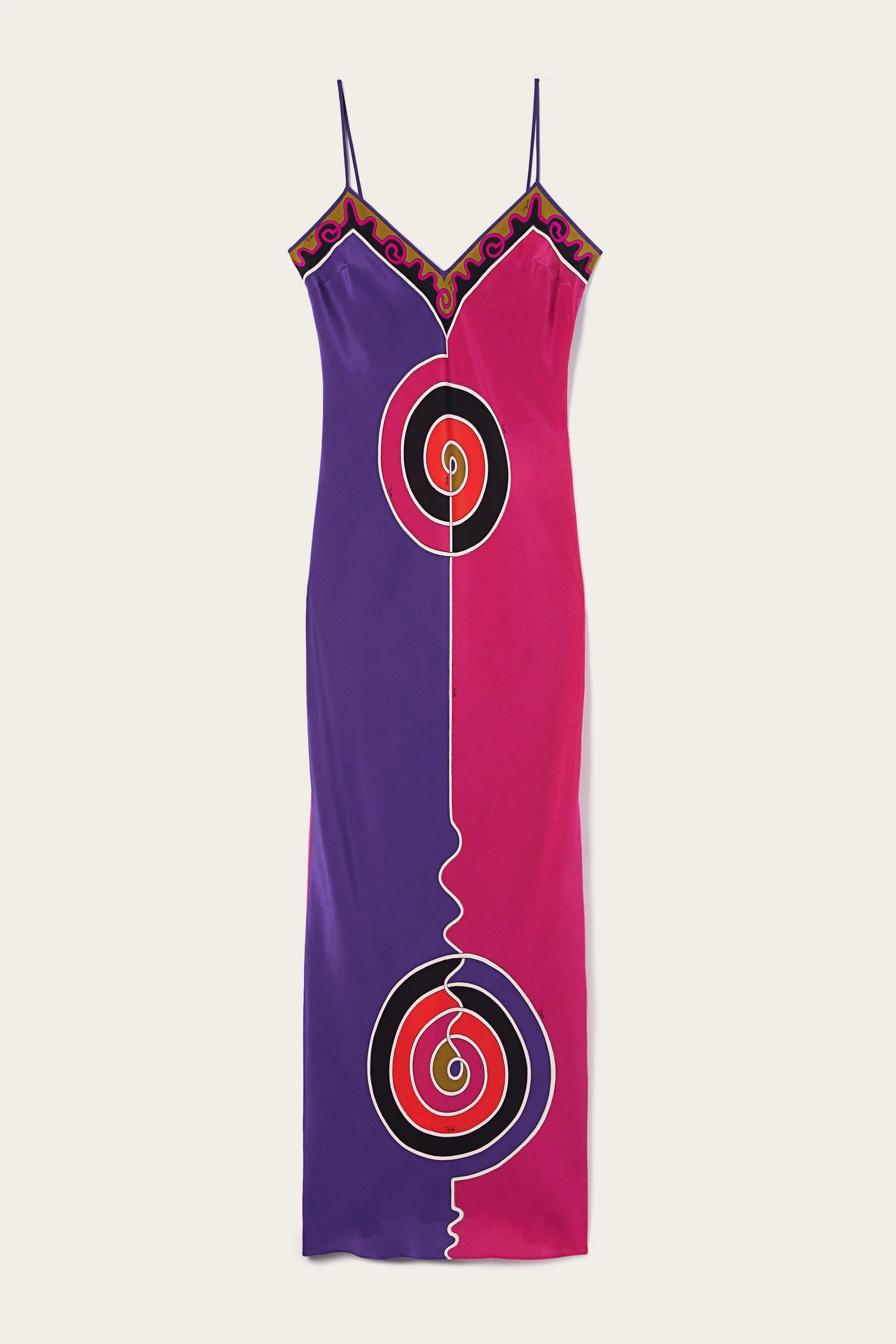 This long sleeveless dress strikes the perfect balance between elegance and lightness. Featuring a deep V-neckline and thin straps that add a feminine and refined touch, the design is completed by a side slit that enhances the movement of the silhouette. Crafted in silk crepe de chine, it is further embellished by the mysterious multicolored Astro print. - To offer you a unique Pucci garment, we use an all-over print that makes the product unrepeatable. Therefore, the pattern print may vary from the one displayed in the photo. - Multicolor - Silk crepe de chine - V-neckline - Thin straps - Side slit on the leg - Lightweight, flowing fabric - Dry clean only - Made in Italy - ID: 5URI275U835043