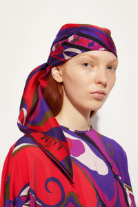 A timeless accessory that encapsulates all the elegance and color of the Pucci world. This silk twill scarf, featuring the Collane print in multicolor, is the perfect detail to brighten up any look. Versatile and sophisticated, it can be worn around the neck, tied in the hair, or knotted to a bag for an unmistakable touch of class. A piece that speaks of style and personality, ideal for any occasion. - Multicolor - Silk - Dimensions 90x90 cm - Delicate dry clean only. - Made in Italy - ID: 5UGB405UC102