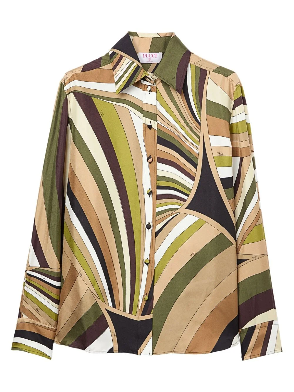 Marmo-print shirt Highlights - Khaki - Front button fastening - Straight-point collar - Long sleeves - Curved hem Made in Italy Composition Silk 100% Washing instructions Dry Clean Only