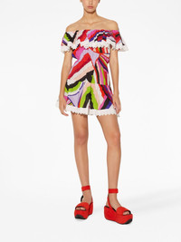 Iride-print off-shoulder cotton dress
