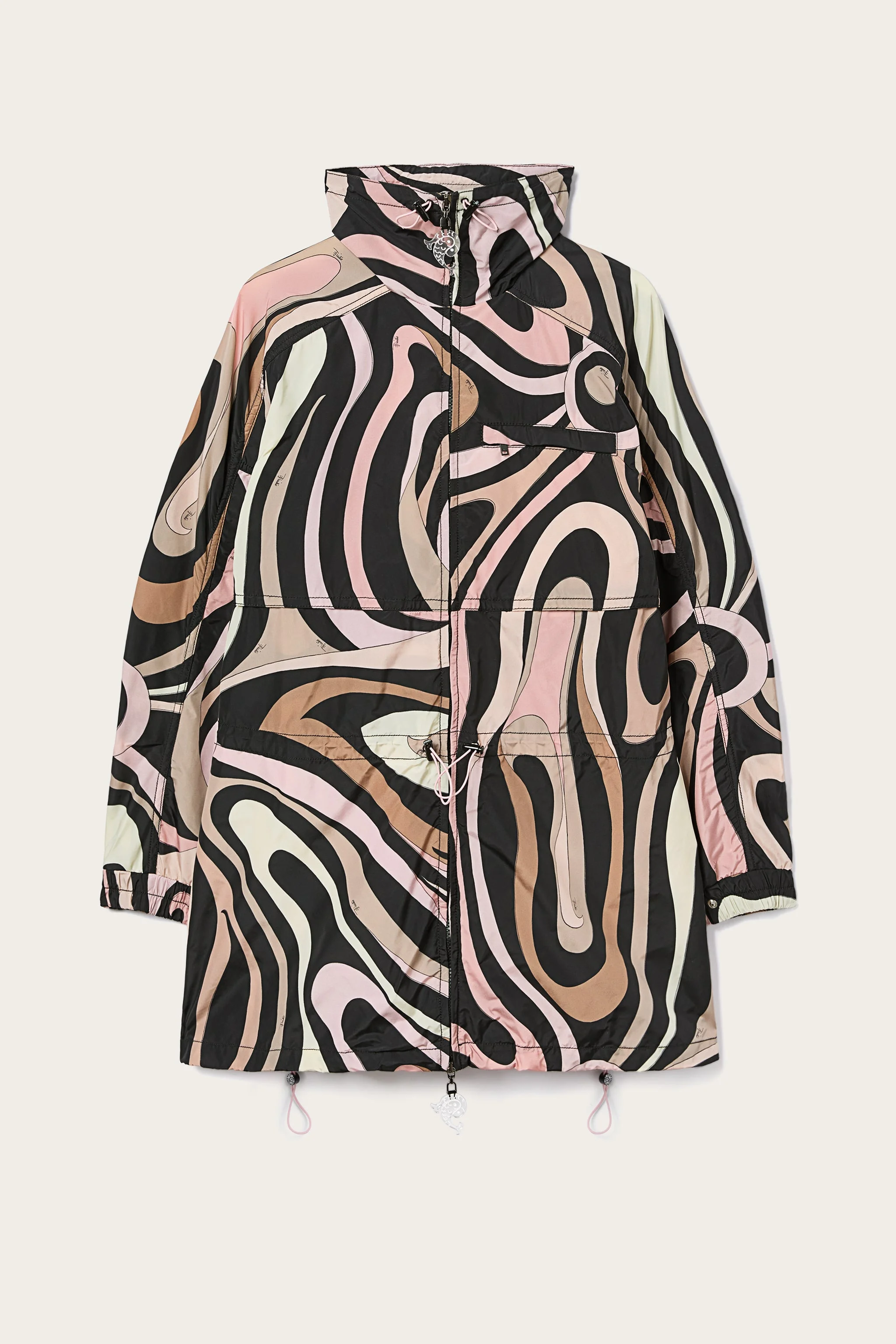 A jacket that redefines contemporary elegance with a charming and functional details. The fitted waist creates a feminine and sophisticated silhouette, while the high collar adds a touch of comfort and warmth, making it ideal for cooler days.Enhanced by the iconic black/nude Marmo print, which lends a touch of timeless sophistication, it is perfect to accompany you on formal occasions or to add character to your everyday look, combining style and practicality with Pucci's unmistakable originality. - To offer you a unique Pucci garment, we use an all-over print that makes the product unrepeatable. Therefore, the pattern print may vary from the one displayed in the photo. - Black andNude - 100% Nylon - High collar - Fitted waist silhouette - Marmo print - Gently dry clean. - Made in Italy - ID: 5HYC715H866001 - Model is 177 cm tall and wears a 38 italian size.