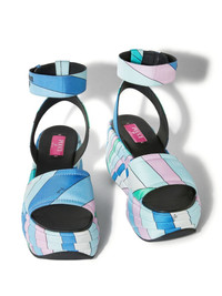 Pucciami 90mm platform sandals Highlights - Blue/multicolour - Silk - Satin finish - Signature iride print - Crossover strap at the toe - Buckle-fastening ankle strap - Round open toe - Branded leather insole - 90mm platform wedge - Flat rubber sole Made in Italy Composition Silk 100% SIZE & FIT Measurement HEEL 3.54 in(9 cm)
