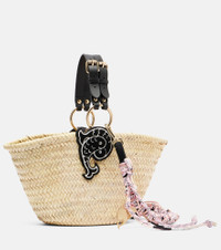 The Puccina basket bag from Pucci is woven from straw to a classic silhouette and features fish-shaped leather trims and gold-toned hardware. The design comes with an adjustable leather strap. Product Details - Material: straw - Lining: unlined - Made in Italy - Designer color name: Natural - Item color: beige - Details: leather, cotton - Contains non-textile parts of animal origin - Hardware color: gold - Item number: P01039015 Size & Fit - Height 21.5cm-8.5" - Width 36cm-14" - Depth 12cm-4.5" - Length of handles 68/40cm-27/15.5"