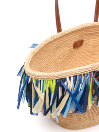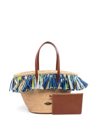 Puccing fringed beach bag Highlights - Beige - Straw - Interwoven design - Iride-print fringe detailing - Two leather flat top handles - Enamel logo plaque to the front - Main compartment - Internal logo patch - Removable pouch with top zip fastening - Open top - This piece comes complete with a protective dust bag. Made in Italy Composition Outer: Straw 100%, Calf Leather 100%, Viscose 76%, Polyester 24% Lining: Polyester 100% SIZE & FIT Model measurements Height 5 ft 10 in(1.78 m) Bust/Chest 32.67 in(83 cm) Hips 35.43 in(90 cm) Waist 23.22 in(59 cm) Measurement DEPTH 7.48 in(19 cm) HANDLE 8.26 in(21 cm) HEIGHT 11.81 in(30 cm) WIDTH 19.68 in(50 cm)