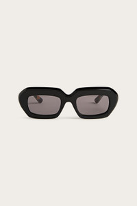 Graphic design and retro accents come together in these rectangular sunglasses. The black acetate frame wraps around smoke lenses, while the inner temples reveal a multicolor archive print, a tribute to Pucci's vibrant DNA. The logo engraved on the side completes the design with a refined touch. - Black, Other and Smoke - Rectangular frame in glossy acetate - Inner temples printed with multicolor archival pattern - Smoke lenses - Size: 51 - Made in China - ID: EP0245P005105A