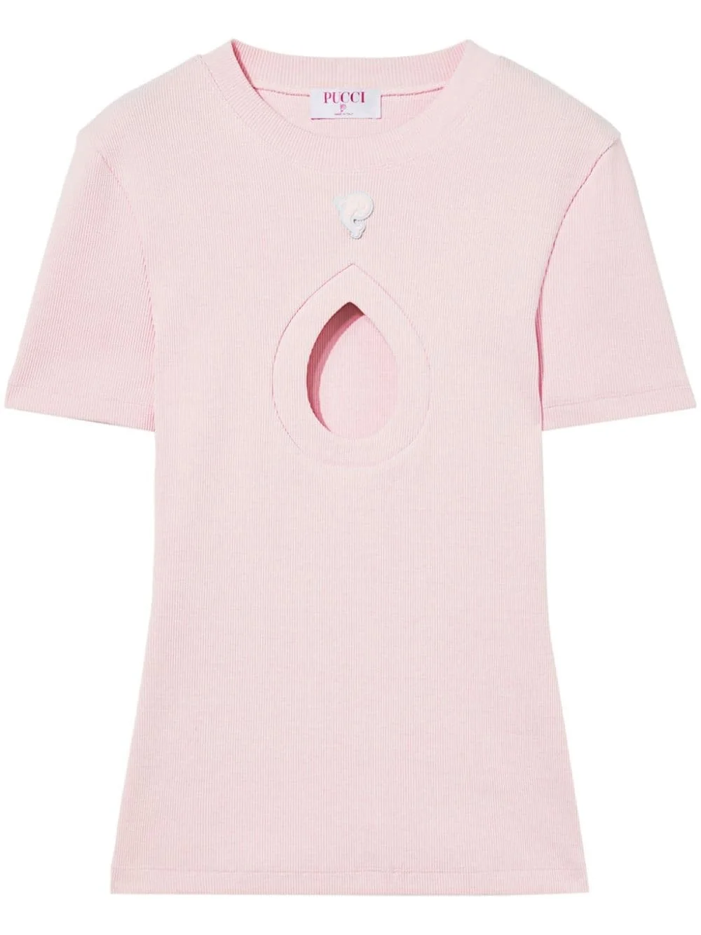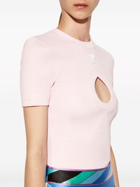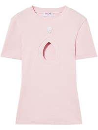 ribbed-knit T-shirt Highlights - Pink - Cotton blend - Ribbed knit - Applique detail - Cut-out detailing - Round neck - Short sleeves - Straight hem Made in Italy Composition Cotton 98%, Spandex/Elastane 2%