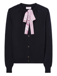 ribbon-detailed cardigan Highlights - Dark blue - Button fastening - Round neck - Long sleeves Made in Italy Composition Silk 100%, Viscose 70%, Polyester 30% Washing instructions Machine Wash