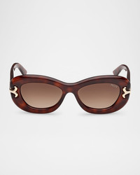 - Emilio Pucci "EP0210W" round sunglasses in acetate and metal - Lens/bridge/temple (in mm): 52-16-140 - Saddle nose bridge - Filigree accent on hinges - Logo on temples - Wide, tapered arms - Spot clean - 100% UVA/UVB protection - Made in Italy - Proposition 65 warning for California residents
