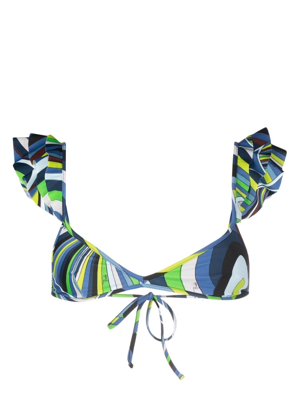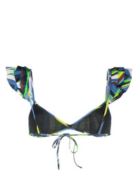 ruffled-straps bikini top Highlights - Cerulean blue/multicolour - Stretch-design - All-over graphic print - Ruffled detailing - Rear tie fastening - Be mindful to try on swimwear over your own garments. Made in Italy Composition Polyamide 80%, Elastane 20%