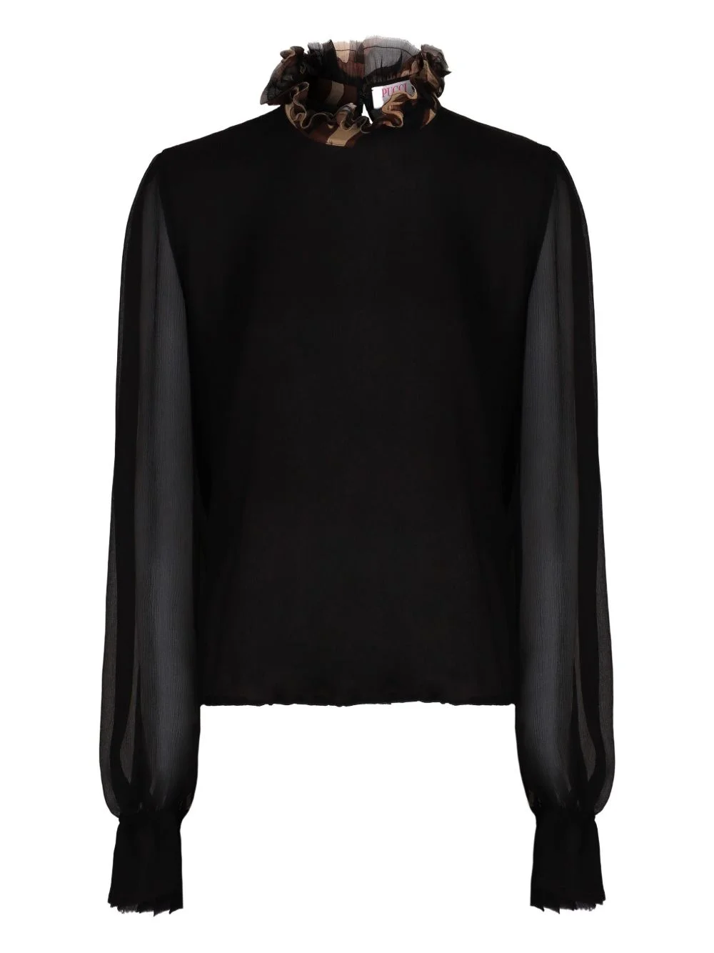 ruffled balloon-sleeve blouse Highlights - Black - Ruffled collar - Balloon sleeves - Structured cuffs - Semi-sheer - Keyhole at the rear Made in Italy Composition Silk 100%