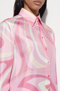 A timeless classic reinterpreted with Pucci's vibrant touch. This long-sleeved shirt, made from pure silk, offers a regular fit that is perfect for any occasion, from work to casual chic events. The Marmo print in pink adds depth and dynamism to the design, evoking elegance with a contemporary character. - To offer you a unique Pucci garment, we use an all-over print that makes the product unrepeatable. Therefore, the pattern print may vary from the one displayed in the photo. - Pink - 100% silk - Long sleeves with collar and buttons - Regular fit - Regular length - Marmo print - Gently dry clean - Made in Italy - ID: 5HRJ085H761028 - Model is 176 cm tall and wears Italian size 38.