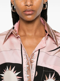 printed shirt Highlights - Light pink - Front button fastening - Chest patch pocket - Buttoned-cuff sleeves - Pointed flat collar Made in Italy Composition Silk 100% SIZE & FIT Model measurements Height 5 ft 11 in(1.8 m) Bust/Chest 31.49 in(80 cm) Hips 35.82 in(91 cm) Waist 24.8 in(63 cm) FittingInformation Designed to be unstructured, offering a loose fit throughout Made from a lightweight non-stretch fabric