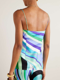 EDITORS'NOTES PUCCI's camisole is printed with the label's 'Iride' motif that's from the '70s archives. It's cut from languid silk-twill and has pin-thin straps and a V-neckline. Wear yours as a set with the matching shorts. SIZE & FIT Model measurements: - Fits true to size, take your normal size - Designed for a slim fit - Lightweight, non-stretchy fabric - Model is 180cm/ 5'11" and is wearing an IT 40 - Bust: 86cm/ 34" - Waist: 65cm/ 25.5" - Hip: 90cm/ 35.5" DETAILS & CARE - Multicolored silk-twill - Slips on - 100% silk - Dry clean