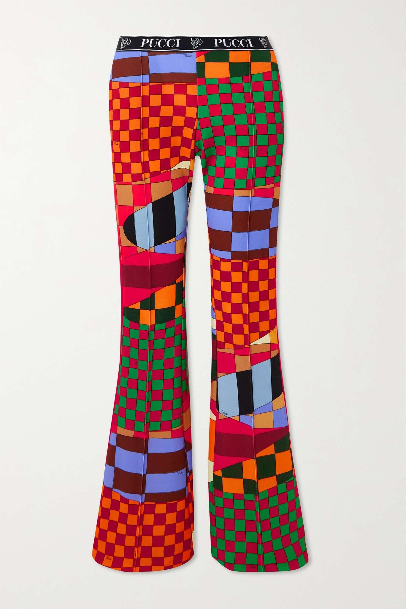 EDITORS'NOTES PUCCI's unapologetically colorful prints can be found in the wardrobes of some of the world's most influential women, including Jennifer Lopez and Beyoncé. Cut for a slim fit with a retro flare, these jersey pants feature a bold, archival 'Giardino' pattern that dates back to 1968. Think of them as sartorial serotonin. SIZE & FIT - Fits true to size, take your normal size - High-rise, designed for a slim fit with a flared hem - Elasticated at the waist for a comfortable fit - Mid-weight, slightly stretchy fabric - Model is 177cm/ 5'10" and is wearing an IT 40 DETAILS & CARE - Multicolored jersey - Concealed hook and zip fastening at side - 100% polyester - Machine wash